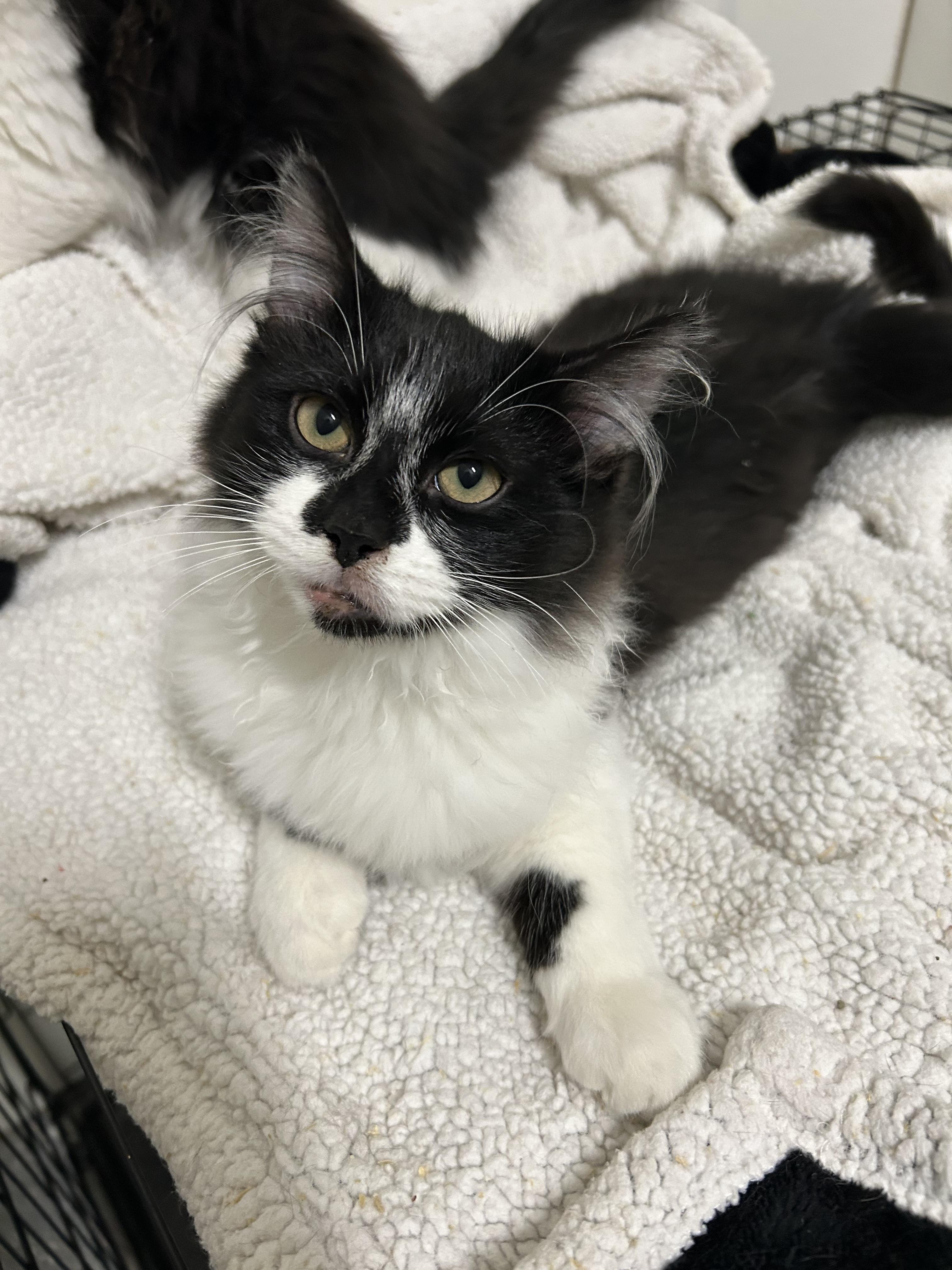 Adoption Photo Gender: Male Age: Baby Coat Length: Long Cat Type black and white long hair Apply To Adopt Bandit