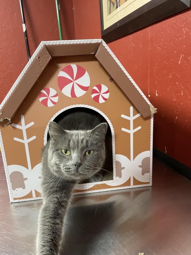 This gorgeous little Russian Blue beauty is one of our official lobby guest greeters. She loves to be part of the action, welcoming everyone with her soft presence and gentle charm.
