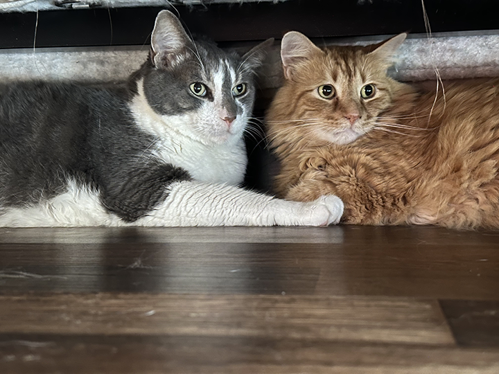 I like other cats…. I have no clue about dogs as I have never been around them…., little kids I'll be under the bed until they leave! But I'll be gentle the loud noises just make me nervous…. I do have a brother that I have trusted that helps bring me out of my shell! (His name is Elliot and he is adoptable too! We can be really good at entertaining each other when you are away).
