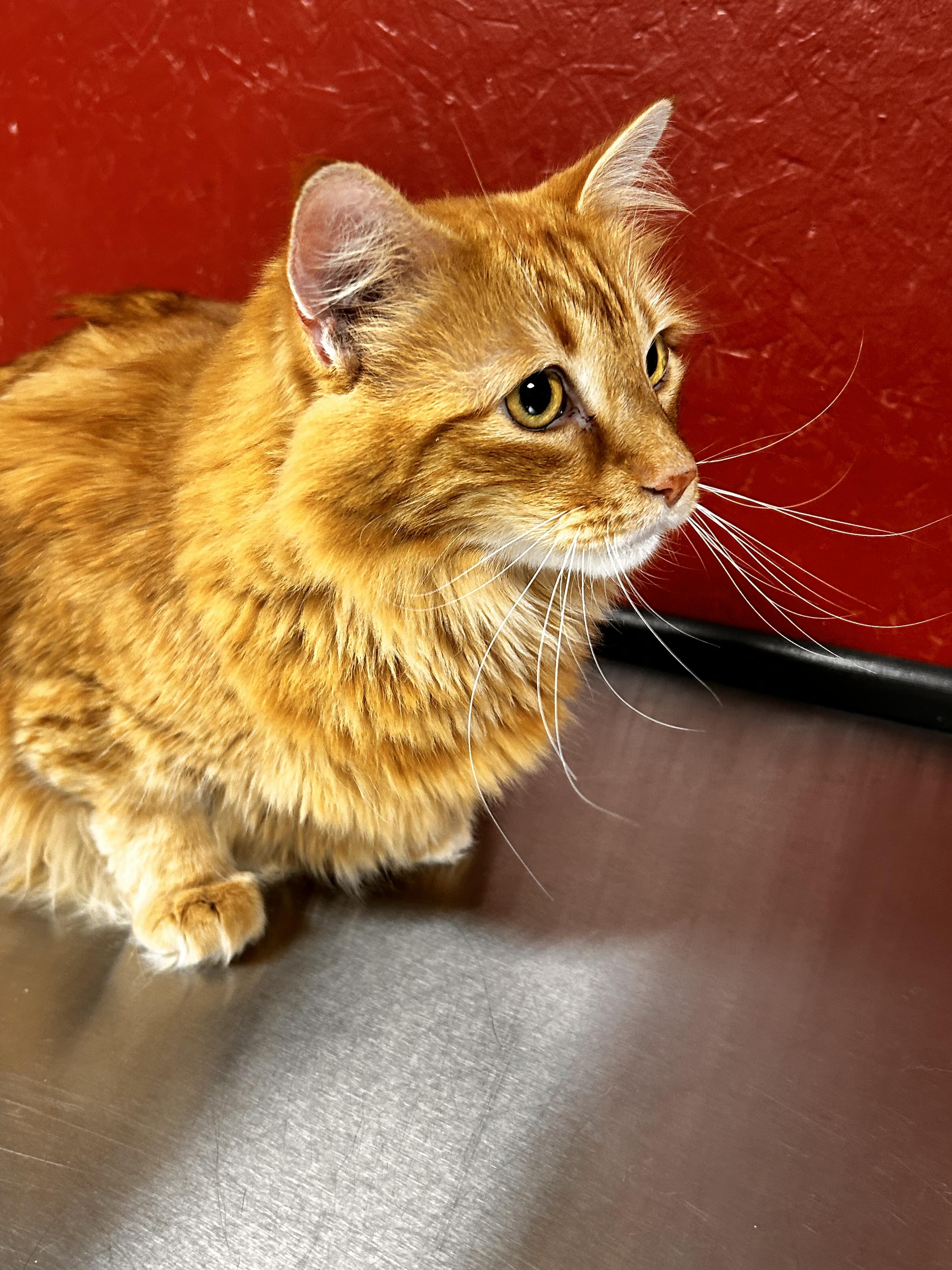 Oscar - I'm a love bug! I will be your best friend…snuggle with you all day if you let me and purr purrr purr! If you have anxiety i can lay on your chest to calm you (yes it works). I enjoy pets all over including my belly! My favorite brush is a Furminator! It gets my hair shiny! I can be quite shy with strangers and feel very comfortable hiding under the bed (I need a spot there please) if you cannot find me I'll be there! I really enjoy laying in the window and watching the world go by. Wand toys are my favorite I can jump sky high after them. I do enjoy puffy balls too! Cat scratchers are a must have. I love them.