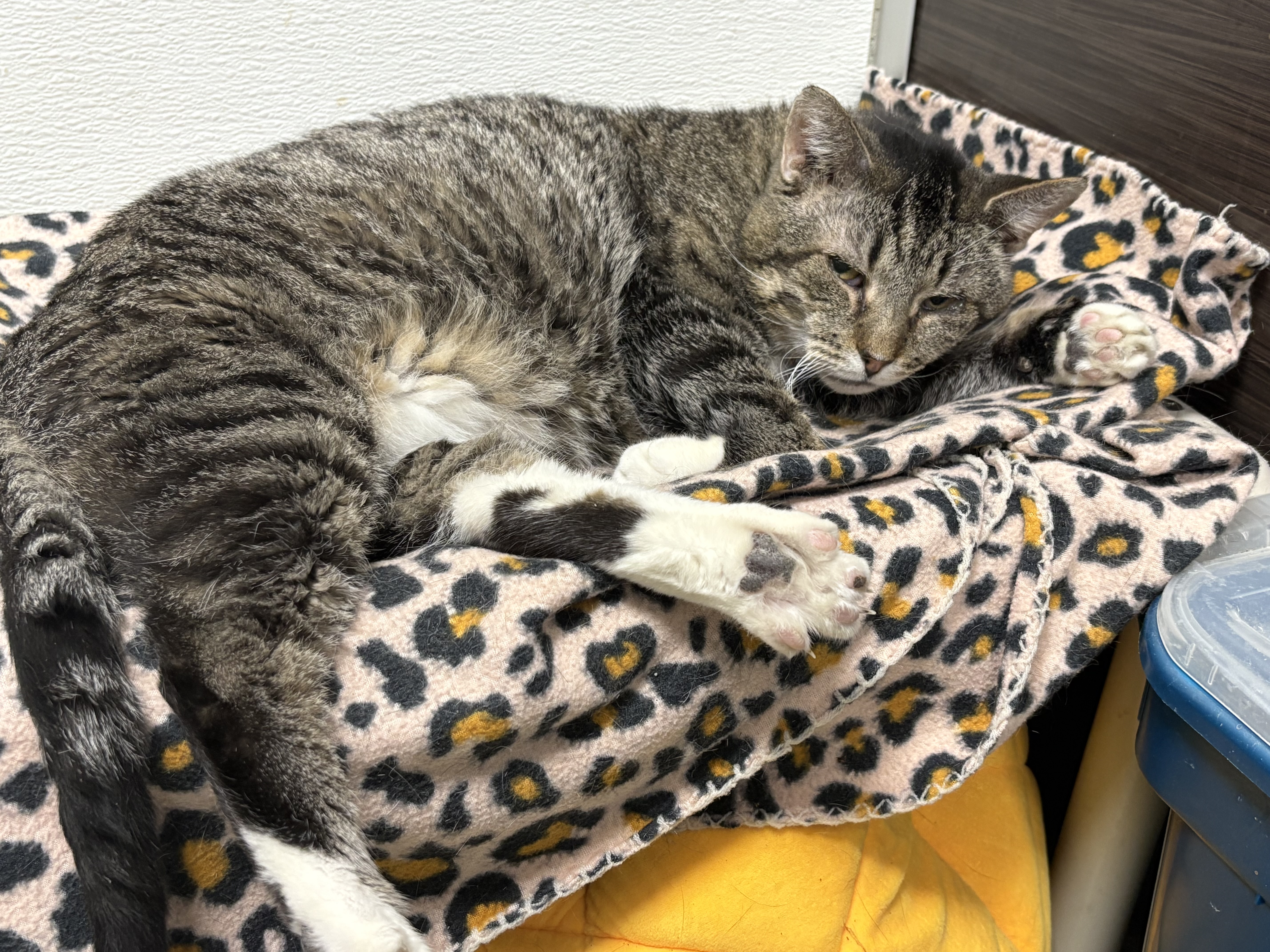 Buddy is a very sweet five-year-old guy who was picked up last year by animal control, then rescued by us back in the fall. Ole Buddy had a rough life living on the streets as an unaltered boy, where he acquired FIV probably from having to fight for his life.
