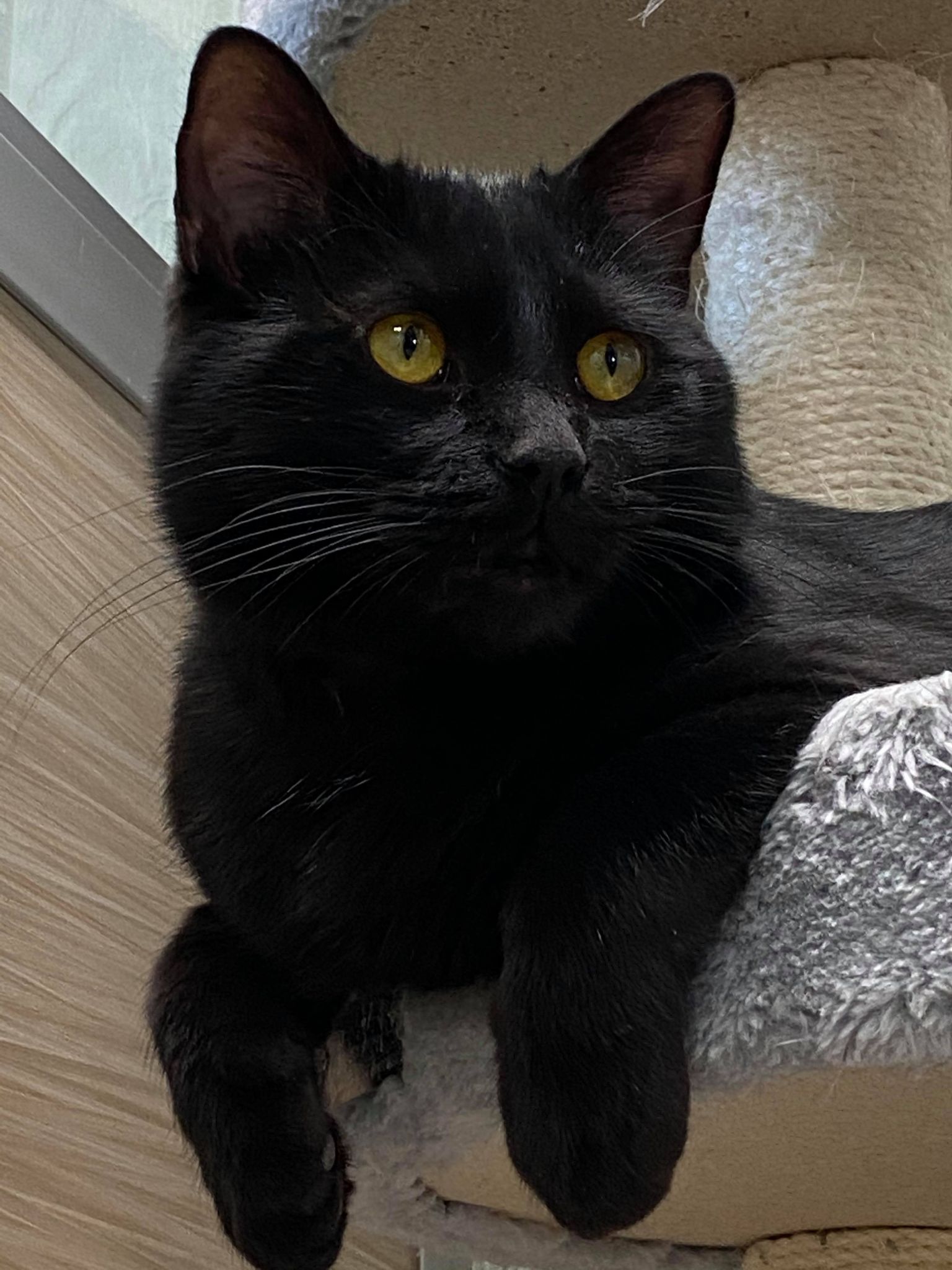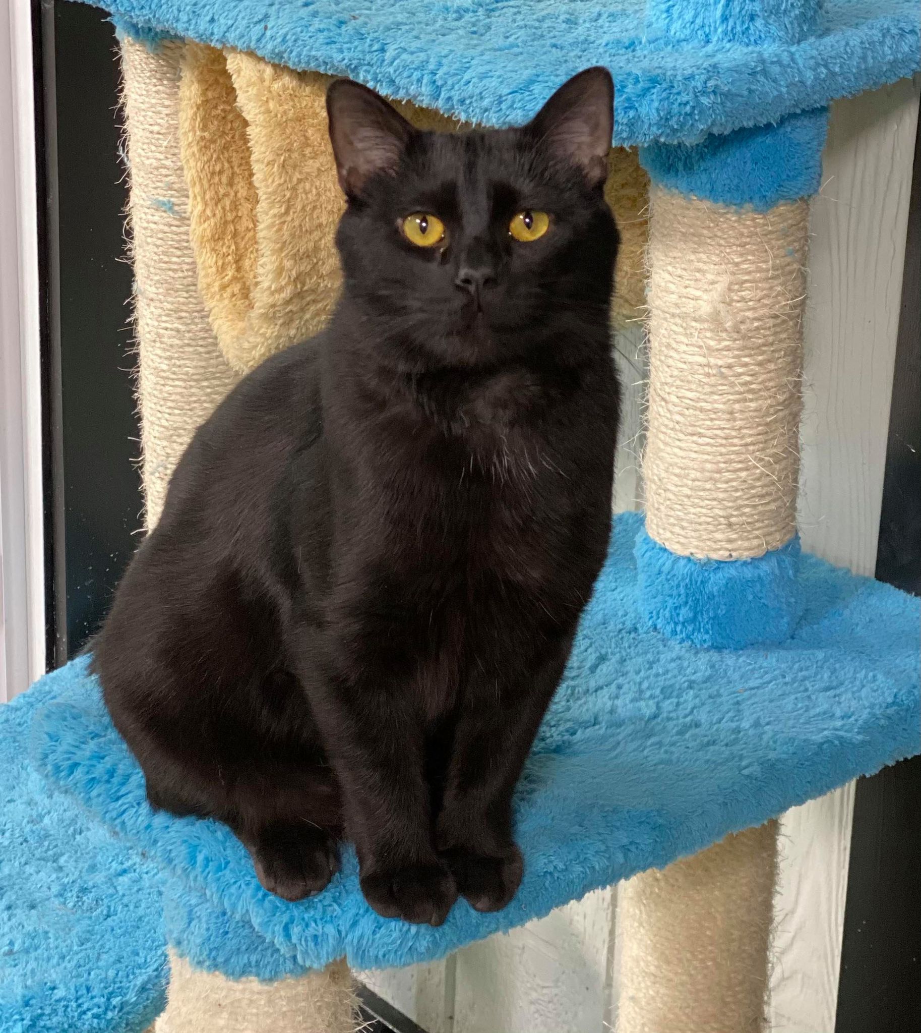 Gender: Male Age: Teen Coat Length: Cat Type black Cinder is a funny boy. He is vocal and very social. He knows he is a handsome boy and is ready to steal your heart. Do you have room in your heart for him? Apply To Adopt Cinder