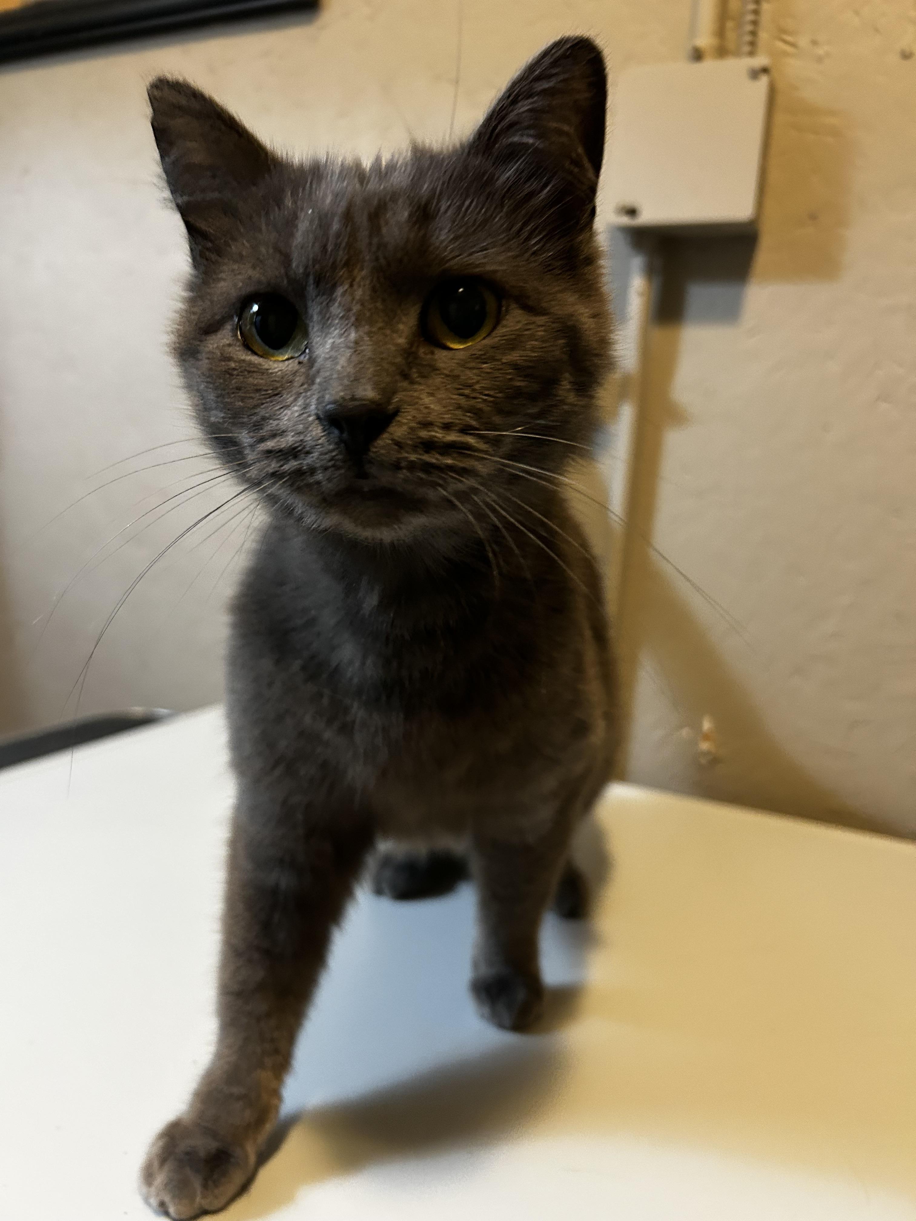 Gender: Female Age: Adult Coat Length: Short Cat Type Russian Blue Clover is an extremely friendly little gal that just loves all the pets she can get. She really gets her motor running when she rolls around asking for belly rubs Apply To Adopt Clover