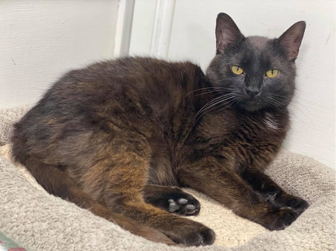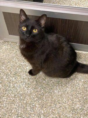 Gender: Male Age: Adult Coat Length: Short Cat Type chocolate black Coco Puff has an unknown story. He is a laid back male that is gentle with his claws. He likes to lounge around and loves attention. Apply To Adopt Coco Puff