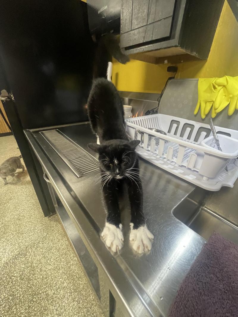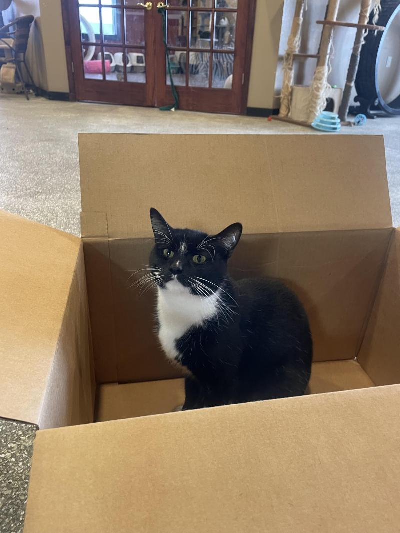 Maggie. This girl is a total mood. She loves boxes of any shape or size, playing in water, doing those long dramatic stretches, and soaking up every chin scratch she can get. She prefers to keep all four paws on the ground, so being picked up is not her thing, but she’s affectionate on her own terms and incredibly sweet once she trusts you.